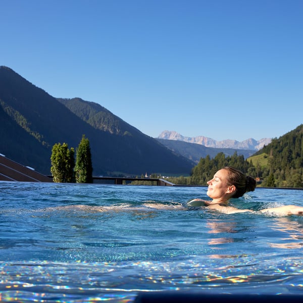 La sorgente della quiete. Della varietà. Della gioia di vivere. L’hotel wellness a 5 stelle è un luogo fuori dal comune incastonato fra le montagne altoatesine: alla sorgente del benessere.